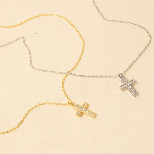 Anchored in Grace CZ Pavé Cross Pendant Necklace